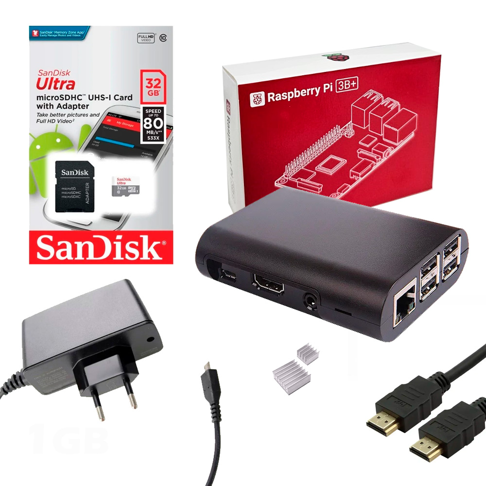 Kit Raspberry Pi 3 B+ 1GB com Cartão MicroSD 32GB, Case, Dissipadores, Fonte e Cabo HDMI